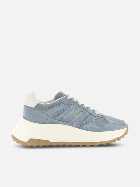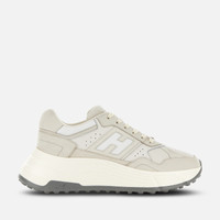 - Women's Hogan Hi-Fi Sneakers - Made in Italy - Nubuck and suede upper - Smooth leather inserts - Carved side H - Memory foam insole 0.3 ins - Rubber outsole - Total height 2.6 ins - Maintenance and care cards included - Fabric dustbag included - Additional laces included The Hogan Hi-Fi sneakers take a feminine twist on the studded Hyperlight outsole, with a raised platform for height and elegance. Recalling the 80s sporting iconography with their technical finishing and urban vocation, they feature a combination of soft and snappy lines. The upper comes here crafted in nubuck, smooth leather and suede, with a maxi H on the side band. An energetic athleisure style, with a memory foam insole to guarantee extra comfort and a cushioned fit.