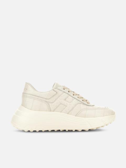 - Women's Hogan Hi-Fi Sneakers - Made in Italy - Leather upper - Crocodile print - Side H - Memory foam insole 0.3 ins - Rubber outsole - Total height 2.6 ins - Maintenance and care cards included - Fabric dustbag included - Additional laces included The Hogan Hi-Fi sneakers take a feminine twist on the studded Hyperlight outsole, with a raised platform for height and elegance. Recalling the 80s sporting iconography with their technical finishing and urban vocation, they feature a combination of soft and snappy lines. The upper comes here crafted in crocodile print leather, with a maxi side H. An energetic athleisure style, with a memory foam insole to guarantee extra comfort and a cushioned fit.
