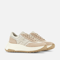 - Women's Hogan Hi-Fi Sneakers - Made in Italy - Suede upper - Technical fabric inserts - Nubuck side H and detailing - Memory foam insole 0.3 ins - Rubber outsole - Total height 2.6 ins - Maintenance and care cards included - Fabric dustbag included - Additional laces included The Hogan Hi-Fi sneakers take a feminine twist on the studded Hyperlight outsole, with a raised platform for height and elegance. Recalling the 80s sporting iconography with their technical finishing and urban vocation, they feature a combination of soft and snappy lines. The upper comes here crafted in suede and technical fabric, with a maxi H on the side band. An energetic athleisure style, with a memory foam insole to guarantee extra comfort and a cushioned fit.
