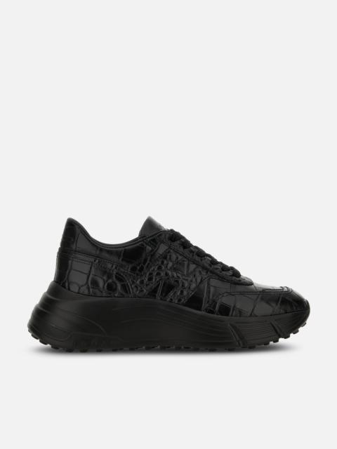- Women's Hogan Hi-Fi Sneakers - Made in Italy - Leather upper - Crocodile print - Side H - Memory foam insole 0.3 ins - Rubber outsole - Total height 2.6 ins - Maintenance and care cards included - Fabric dustbag included - Additional laces included The Hogan Hi-Fi sneakers take a feminine twist on the studded Hyperlight outsole, with a raised platform for height and elegance. Recalling the 80s sporting iconography with their technical finishing and urban vocation, they feature a combination of soft and snappy lines. The upper comes here crafted in crocodile print leather, with a maxi side H. An energetic athleisure style, with a memory foam insole to guarantee extra comfort and a cushioned fit.