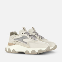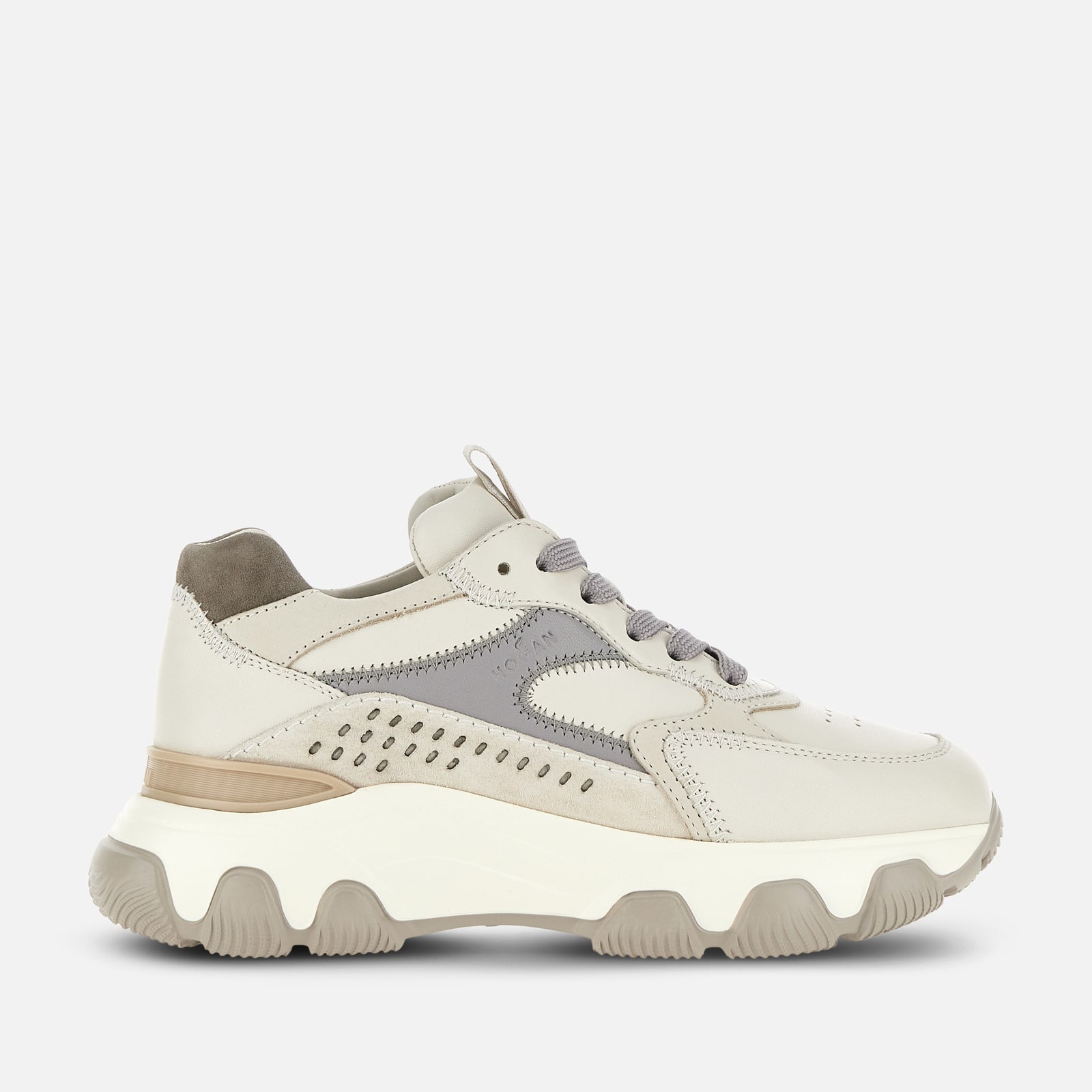 - Women's Hogan Hyperactive Sneakers - Made in Italy - Nappa leather upper - Suede inserts - Nubuck detailing - Side Hogan logo - Memory foam insole 0.3 ins - Rubber outsole - Total height 2.4 ins - Maintenance and care cards included - Fabric dustbag included - Additional laces included The luxury Hogan Hyperactive sneakers are a dynamic combination of contemporary inspiration and heritage detailing. The extra-light chunky outsole features a sleek trim perfectly blending with those of the upper. This style is crafted in nappa leather and suede, with the Hogan logo stamped on the side and a memory foam insole. The new star of the urban lifestyle.