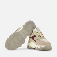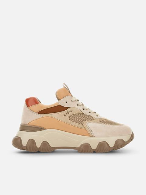 - Women's Hogan Hyperactive Sneakers - Made in Italy - Suede upper - Lurex blend fabric inserts - Side Hogan logo - Laminated leather detailing - Memory foam insole 0.3 ins - Rubber outsole - Total height 2.4 ins - Maintenance and care cards included - Fabric dustbag included - Additional laces included The Hogan Hyperactive sneakers combine contemporary inspiration and heritage details. The extralight chunky outsole features a sleek trim, in perfect harmony with the upper aesthetic. This style is crafted in suede and shiny fabric, with laminated leather detailing and the Hogan logo stamped on the side. The memory foam insole guarantees softness and cushioning.