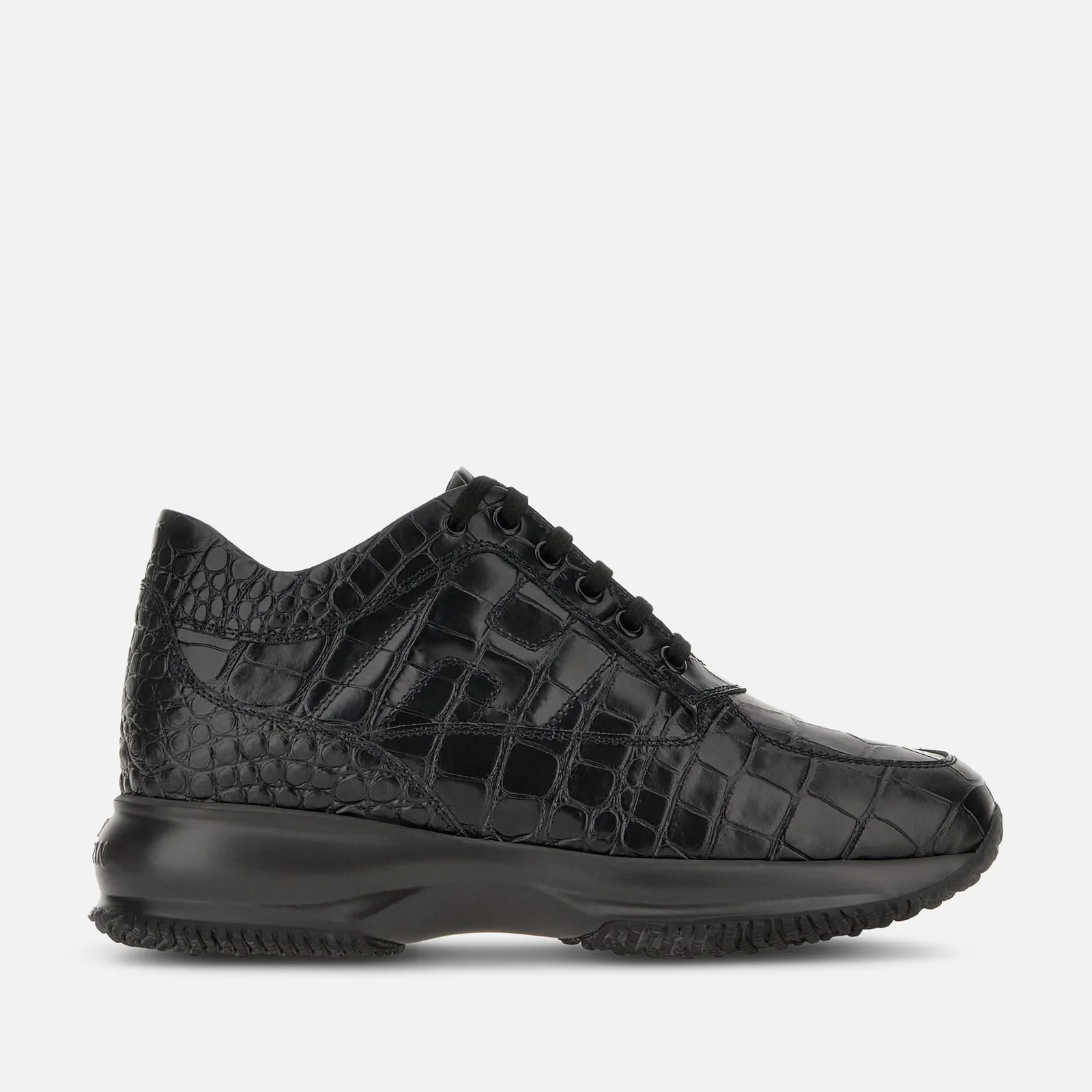 - Women's Hogan Interactive Sneakers - Made in Italy - Leather upper - Crocodile print - Padded side H - Removable insole 0.5 ins - Rubber outsole - Total height 2.2 ins - Maintenance and care cards included - Fabric dustbag included - Additional laces included Hogan Interactive is a timeless icon, since 1997 absolute interpreter of functional and contemporary luxury. Characterized by an elegant design and a lightweight outsole to guarantee a tall-and-slim look, these sophisticated sneakers in crocodile print leather feature a padded side H. Perfect for a sporty chic look.
