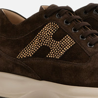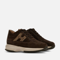 - Women's Hogan Interactive Sneakers - Made in Italy - Suede upper - Rhinestone side H - Removable insole 0.5 ins - Rubber outsole - Total height 2.2 ins - Maintenance and care cards included - Fabric dustbag included - Additional laces included Hogan Interactive is a timeless icon, since 1997 absolute interpreter of functional and contemporary luxury. Characterized by an elegant design and a lightweight outsole to guarantee a tall-and-slim look, these precious sneakers in suede feature a side H covered by shiny rhinestones. Perfect for a sporty chic look.