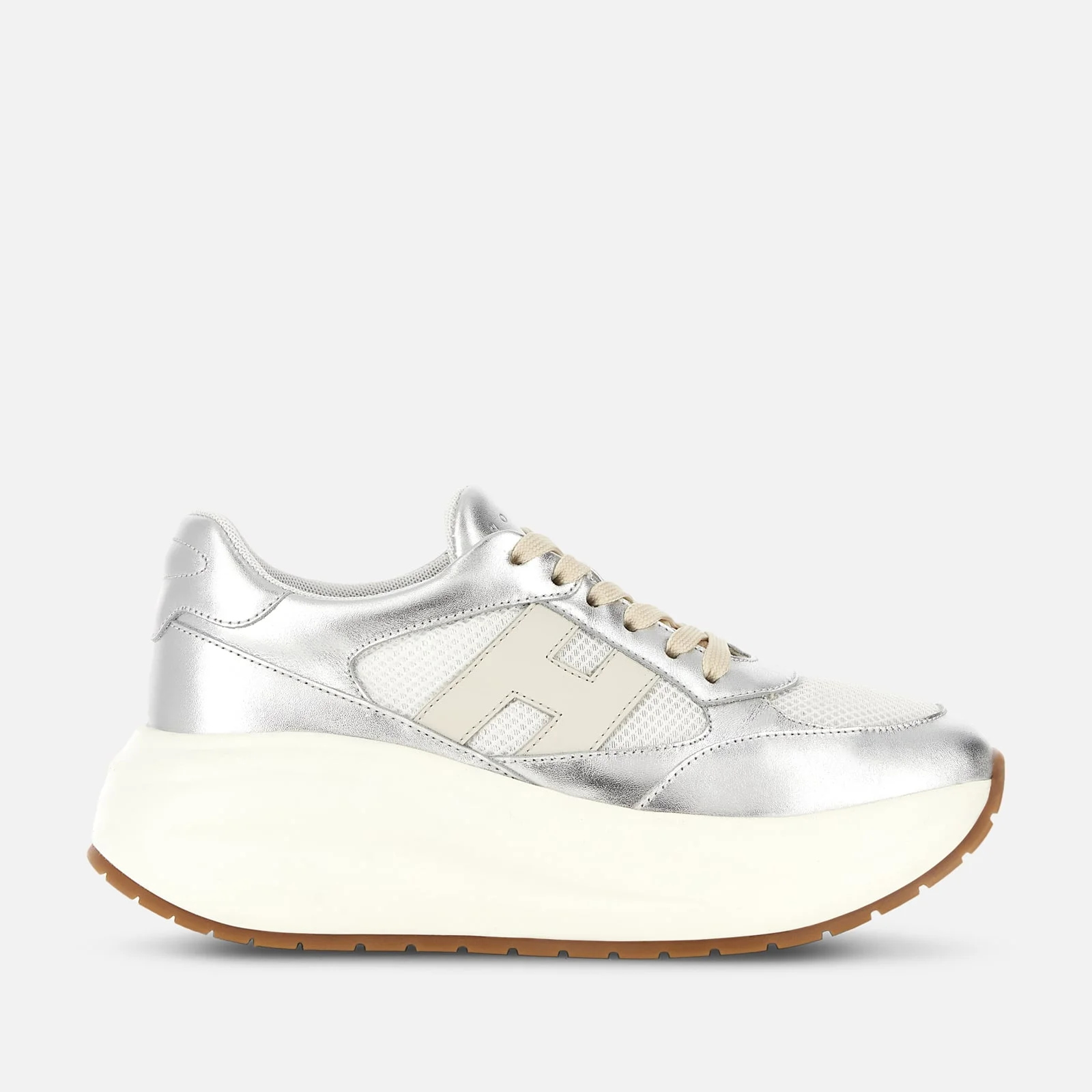 - Women's Hogan Maxi I Active Sneakers - Made in Italy - Metallic leather and mesh fabric upper - Smooth leather side H - Hogan logo stamped on the tongue - Memory foam insole 0.2 ins - Extralight rubber outsole - Total height 2.6 ins - Maintenance and care cards included - Fabric dustbag included - Additional laces included A sculptural construction and a voluptuous chunky sole that provides comfortable elevation. The Hogan Maxi I Active sneaker features a dynamic and sophisticated design. Crafted in metallic leather and mesh fabric with luxury manufacturing, it comes with a softly rounded upper, maxi H in smooth leather on the side and a memory foam insole.