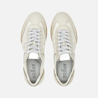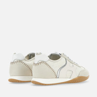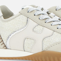 - Women's Hogan Olympia-Z Sneakers - Made in Italy - Printed nubuck upper - Bouclé fabric inserts - Smooth leather side H and detailing - Threading on the toe - Memory foam insole 0.2 ins - Rubber outsole - Total height 1.2 ins - Maintenance and care cards included - Fabric dustbag included - Additional laces included Reinterpretation of the iconic Hogan Olympia design, the Hogan Olympia-Z sneakers come with a rubber outsole for a fresh and dynamic look. This style is crafted in textured nubuck and bouclé fabric, with smooth leather side H and threading on the heel. Lightweight and versatile, with a memory foam insole, they add style to your casual outfit.