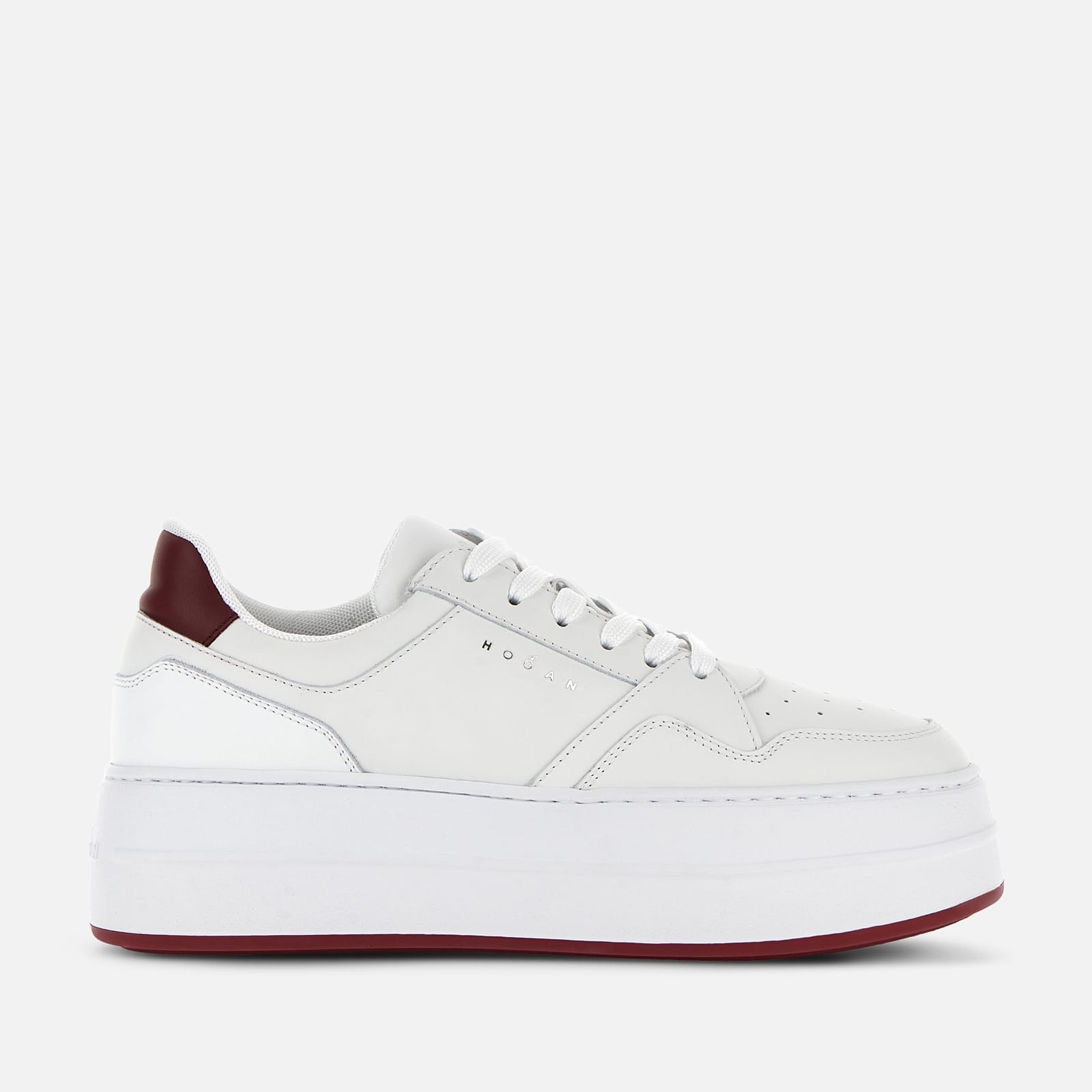 - Women's Hogan Skyscraper Sneakers - Made in Italy - Smooth leather upper - Hogan logo stamped on the side - Memory foam insole 0.2 ins - EVA outsole - Total height 2.6 ins - Maintenance and care cards included - Fabric dustbag included - Additional laces included A modernized and ultra-platformed version of the archetypal tennis shoe, The Hogan Skyscraper sneakers feature sleek lines and an urban chic vibe. Here with a basketball-inspired upper, they are crafted in smooth leather, with the Hogan logo stamped on the side. Featuring a high lightweight outsole, they are complemented by a soft memory foam insole.