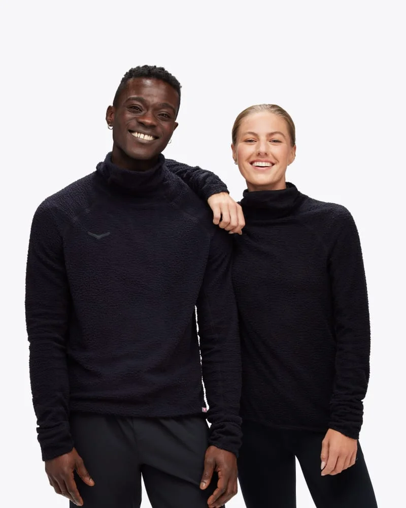 People tell us this cozy base layer feels like a hug. And they're not wrong. Envelop yourself in the softest Prima Loft Active fleece on your next chilly hike and prepare for ultralight warmth that breathes like a dream. Optimal for high-output adventures, our Basecamp Thermal Midlayer is finished with fold-over hand warmers and an elastic bungee waist. Super soft Prima Loft Active fleece. Versatile funnel neck. Hand warmer cuff. Elastic binding at collar. Reflective drawcord at hip. Silicone bird and HOKA logo.