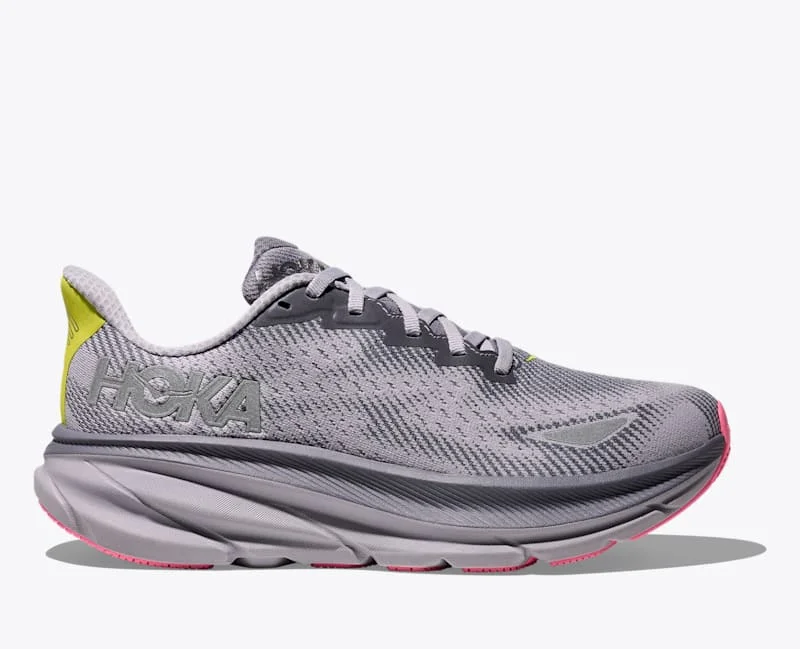 Empowering runners to log their miles - no matter the weather - our classic Clifton has been updated with GORE-TEX Invisible Fit and weather-ready traction pods. HOKA's first-ever weatherproof road shoe, this splash-ready silhouette features 360-degree reflectivity and closed mesh construction for added protection. Designed to shine, even when the weather doesn't, the Clifton 9 GTX proves no forecast is too fierce. Creel jacquard knit. 360-degree reflectivity. GORE-TEX Invisible Fit with 70% recycled polyester face fabric. Durabrasion rubber outsole. Traction pods. 30% Recycled polyester upper mesh and collar. 100% Recycled polyester top tongue mesh. 92% Recycled polyester bottom tongue mesh. Laces with 70% recycled nylon and 30% recycled polyester. 87% Recycled polyester strobel board.