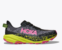A grippy, responsive ride for technical terrain. There's only one GOAT on the trail. And this is it. Combining HOKA's tried and true cushioning with aggressive traction and ultralight materials, the Speedgoat 6 was born to tame the trail. A workhorse for technical terrain, this recent reissue was refined with a breathable woven textile upper, foot-hugging internal chassis, plusher dual gusset tongue, and revised lug orientation inspired by the hoof of a goat (what else?) Lightweight woven upper. Internal support chassis. Dual-sided gusseted tongue. Dynamic vamp. Protective toe bumper. Vibram Megagrip with Traction Lug. Revised lug orientation. Light, responsive midsole compound. Lighter more responsive foam. 5mm lugs. Vegan.
