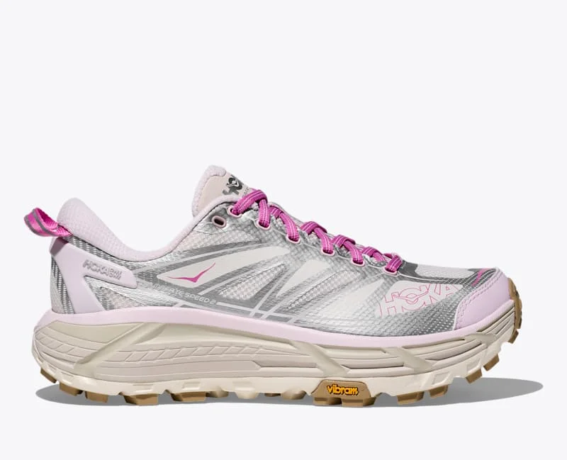 The Mafate Speed 2 was built to offer support and cushioning in technical terrain over any distance. This update features a deep Active Foot frame for support, and a tuned Meta-Rocker to facilitate smooth transitions through the gait cycle. The outsole utilizes deep flex grooves to adapt to a variety of terrain, and the 5mm Vibram Mega-Grip tread grips even the trickiest surfaces. The Mafate Speed 2 is ready to perform mile after mile, however far your trail adventure takes you. Lightweight no-sew Speed Frame construction. External monomesh debris screen. Lightweight external TPU heel counter. Early stage Meta Rocker geometry. Lightweight cushioned CMEVA top midsole. Vibram Megagrip outsole. 4mm heel to toe offset. Strategic high-abrasion rubber zones.