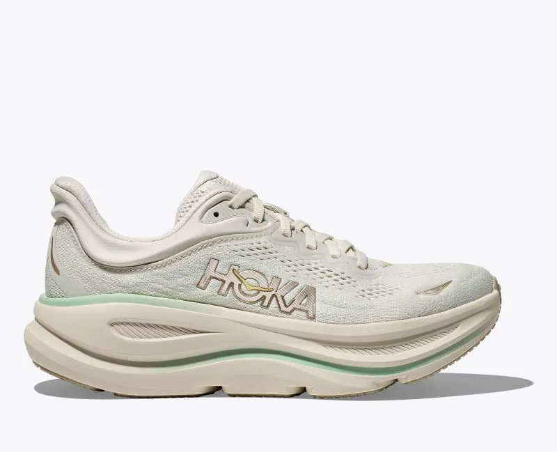 One of the hardest working shoes in the HOKA lineup, the Bondi 9 delivers peak plushness for everyday miles. Overhauled from top to bottom, we've increased the stack height and added a new premium foam midsole to deliver that soft, resilient ride that's become synonymous with the Bondi. Elevated with a 3D molded collar and structured knit upper with zonal breathability, this ultra-cushioned cult favorite has been finished with Durabrasion rubber to combat high wear zones. 3D molded collar. Super critically foamed EVA. Engineered mesh with 55% recycled polyester. Reflective upper details. Extended heel pull. Smooth Meta Rocker. Rearfoot-focused Active Foot Frame. Molded EVA sockliner. Durabrasion rubber outsole.