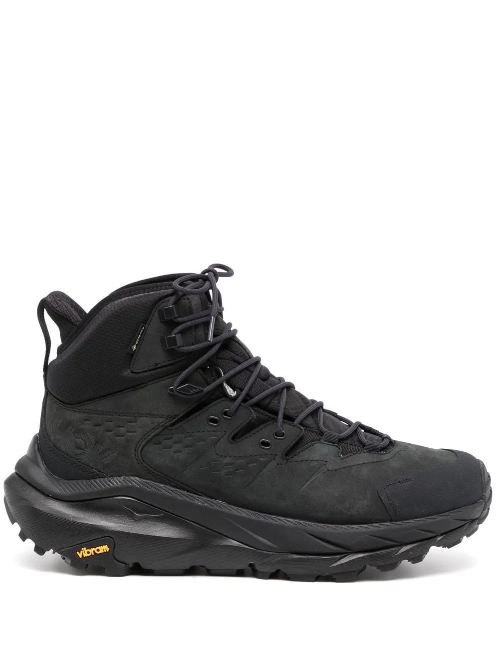 Kaha 2 GTX boots jet black cotton/calf leather ankle length pull-tab at the heel round toe front lace-up fastening branded insole flat rubber sole Imported Composition Lining: Cotton 100% Outer: Calf Leather 100% Sole: Rubber 100% SIZE & FIT Measurement HEEL 2.55 in(6.5 cm) HEIGHT 4.92 in(12.5 cm) Sole height 1.57 in(4 cm)