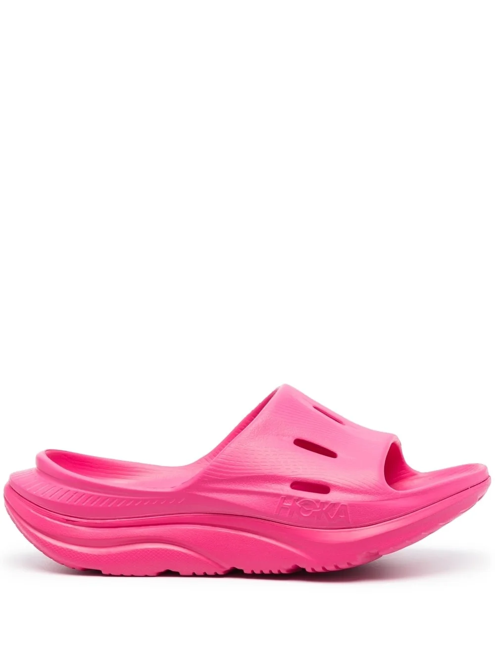 Ora Recovery slides Highlights - Hot pink - Slip-on style - Cut-out detailing - Open toe - Moulded footbed - Ridged rubber sole Imported Composition Lining: Rubber 100% Sole: Rubber 100% Outer: Rubber 100% SIZE & FIT FittingInformation This piece fits small – take one size up Measurement HEEL 1.77 in(4.5 cm) Sole height 0.98 in(2.5 cm)