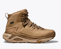 A long-haul adventure hiker that's cushier and more durable than ever before, the Kaha returns in a sleek new package. Geared for day hikes and multi-day adventures, our cushy sockliner combats foot fatigue while a dual density sugarcane EVA midsole provides a bit more bounce than its predecessor. HOKA's first-ever mid-cut hiker with GORE-TEX Invisible Fit, the Kaha 3 GTX features a durable toe cap, Achilles-friendly heel collar to mitigate pressure, and Vibram Megagrip outsole for toothy traction on lose terrain. Leather Working Group Gold-Rated waterproof nubuck leather. One-piece Vibram Megagrip with Traction Lug and 4mm lugs. Quick-lace metal top hooks. GORE-TEX Invisible Fit footwear fabric with 71% recycled polyester face fabric. Dual-density midsole with 30% sugarcane EVA. PU Sockliner made with 50% bio-renewable Susterra propanediol. 100% Recycled polyester quarter mesh, tongue mesh and lining mesh Hubble Heel and Swallow Tail design. Meta Rocker with integrated flex grooves.
