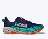 A grippy, responsive ride for technical terrain. There's only one GOAT on the trail. And this is it. Combining HOKA's tried and true cushioning with aggressive traction and ultralight materials, the Speedgoat 6 was born to tame the trail. A workhorse for technical terrain, this recent reissue was refined with a breathable woven textile upper, foot-hugging internal chassis, plusher dual gusset tongue, and revised lug orientation inspired by the hoof of a goat (what else?) Lightweight woven upper. Internal support chassis. Dual-sided gusseted tongue. Dynamic vamp. Protective toe bumper. Vibram Megagrip with Traction Lug. Revised lug orientation. Light, responsive midsole compound. Lighter more responsive foam. 5mm lugs. Vegan.