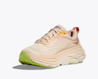 One of the hardest working shoes in the HOKA lineup, the Bondi takes a bold step forward this season reworked with softer, lighter foams and a brand-new extended heel geometry. Taking on a billowed effect, the rear crash pad affords an incredibly soft and balanced ride from heel strike to forefoot transaction. Item No. 1127952 Best for: Everyday Run Walking Comfort Features: Engineered mesh construction Partially gusseted tongue 40% Recycled polyester eyestay lining Heel pull tab Ortholite® hybrid sockliner Lightweight, resilient foam Zonal rubber placement for weight savings Durabrasion rubber outsole Vegan Upper mesh with 50% recycled polyester 87% Recycled polyester strobel board 100% recycled polyester sockliner top cloth RN 88276 WHAT'S NEW Amplifying core performance features, the Bondi 8 is upgraded with an extended heel, brand-new foam, and pillowed tongue. THE DETAILS Weight 8.90 oz Heel-To-Toe Drop 4.00 mm Stability The Bondi 8 features a symmetrical bed of cushion without additional prescriptive technologies. Designed to provide the support you want and nothing you don't. Cushion The Bondi 8 features a higher bed of soft cushion, designed to provide a forgiving impact and ride.