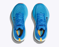 One of the hardest working shoes in the HOKA lineup, the Bondi takes a bold step forward this season reworked with softer, lighter foams and a brand-new extended heel geometry. Taking on a billowed effect, the rear crash pad affords an incredibly soft and balanced ride from heel strike to forefoot transaction. Item No. 1127952 Best for: Everyday Run Walking Comfort Features: Engineered mesh construction Partially gusseted tongue 40% Recycled polyester eyestay lining Heel pull tab Ortholite® hybrid sockliner Lightweight, resilient foam Zonal rubber placement for weight savings Durabrasion rubber outsole Vegan Upper mesh with 50% recycled polyester 87% Recycled polyester strobel board 100% recycled polyester sockliner top cloth RN 88276 WHAT'S NEW Amplifying core performance features, the Bondi 8 is upgraded with an extended heel, brand-new foam, and pillowed tongue. THE DETAILS Weight 8.90 oz Heel-To-Toe Drop 4.00 mm Stability The Bondi 8 features a symmetrical bed of cushion without additional prescriptive technologies. Designed to provide the support you want and nothing you don't. Cushion The Bondi 8 features a higher bed of soft cushion, designed to provide a forgiving impact and ride.