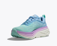 One of the hardest working shoes in the HOKA lineup, the Bondi takes a bold step forward this season reworked with softer, lighter foams and a brand-new extended heel geometry. Taking on a billowed effect, the rear crash pad affords an incredibly soft and balanced ride from heel strike to forefoot transaction. Item No. 1127952 Best for: Everyday Run Walking Comfort Features: Engineered mesh construction Partially gusseted tongue 40% Recycled polyester eyestay lining Heel pull tab Ortholite® hybrid sockliner Lightweight, resilient foam Zonal rubber placement for weight savings Durabrasion rubber outsole Vegan Upper mesh with 50% recycled polyester 87% Recycled polyester strobel board 100% recycled polyester sockliner top cloth RN 88276 WHAT'S NEW Amplifying core performance features, the Bondi 8 is upgraded with an extended heel, brand-new foam, and pillowed tongue. THE DETAILS Weight 8.90 oz Heel-To-Toe Drop 4.00 mm Stability The Bondi 8 features a symmetrical bed of cushion without additional prescriptive technologies. Designed to provide the support you want and nothing you don't. Cushion The Bondi 8 features a higher bed of soft cushion, designed to provide a forgiving impact and ride.
