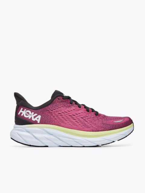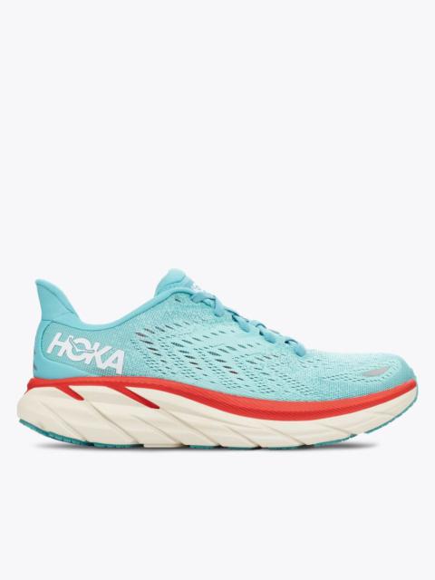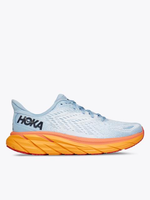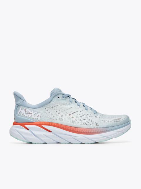 The latest in the award-winning Clifton franchise, the Clifton 8 continues to deliver the perfect combination of soft and light. Crafted with a lighter, more responsive midsole and the same ride characteristics, the Clifton 8 features a streamlined silhouette and updated upper made from engineered mesh. Item No. 1119394 Best for: Everyday Run Walking Features: Breathable mesh upper Early stage Meta-Rocker Extended pull tab Flat-waisted geometry High-abrasion rubber Gusseted tongue EVA foam WHAT'S NEW We kept what you love and updated what you didn’t. THE DETAILS Weight 7.20 oz Heel-To-Toe Drop 5.00 mm Volume 502.00 cm 3 Spring Measurement 30x19 mm Stability The Clifton 8 features a symmetrical bed of cushion without additional prescriptive technologies. Designed to provide the support you want and nothing you don't. Cushion The Clifton 8 is designed to provide protective cushion while maintaining a responsive toe-off for when you want to go faster.