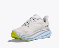 The ninth iteration of our award-winning Clifton franchise has launched, lighter and more cushioned than ever before. Eliminating weight while adding 3mm in stack height, the new Clifton 9 delivers a revitalized underfoot experience with a responsive new foam and improved outsole design. Removing overlays and hotmelts, the stripped back upper has been consciously crafted with a plusher heel, reflective heel panel, and streamlined tongue with single side medial gusset. Item No. 1127896 Best for: Everyday Run Walking Features: Breathable engineered knit upper Gusseted tongue Compression molded EVA foam midsole Early stage Meta-Rocker Durabrasion rubber outsole Inherently stable geometry Recycled content mesh Recycled polyester laces Vegan RN 88276 WHAT'S NEW More stack height, less weight (4 grams, to be exact). THE DETAILS Weight 7.30 oz Heel-To-Toe Drop 5.00 mm Stability The Clifton 9 features a symmetrical bed of cushion without additional prescriptive technologies. Designed to provide the support you want and nothing you don't. Cushion The Clifton 9 features a higher bed of soft cushion, designed to provide a forgiving impact and ride.