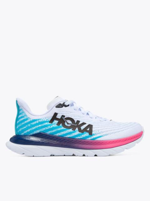 The lovechild of Mach 4 and Mach Supersonic, this lively pavement pounder is built for performance and ready to race. Sporting a stripped back creel mesh upper and lay-flat tongue, the new Mach 5 delivers a snappier ride with PROFLY’s stacked midsole setup, offering a lightweight, responsive foam directly underfoot and rubberized EVA below. Item No. 1127894 Best for: Everyday Run Race Features: Creel jacquard engineered mesh Lightweight, resilient foam ProFly™+ construction Molded EVA sockliner Rubberized EVA outsole Vegan Lay-flat gusseted tongue Articulated heel collar 52% recycled polyester mesh upper Laces with 70% recycled nylon and 30% recycled polyester 100% recycled polyester sockliner top cloth RN 88276 WHAT'S NEW A little more “oomph” in both performance and ride. THE DETAILS Weight 6.80 oz Heel-To-Toe Drop 5.00 mm Stability The Mach 5 features a symmetrical bed of cushion without additional prescriptive technologies. Designed to provide the support you want and nothing you don't. Cushion The Mach 5 features a low-profile cushion bed that keeps your foot closer to the ground, and utilizes a firmer material designed to provide an efficient push-off.
