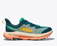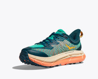 A pinnacle product for technical trail, the Mafate Speed 4 makes its debut, distilling what we’ve seen in the EVO Mafate and Mafate Speed. A familiar HOKA classic, just updated with new textiles and construction, including a breathable, single layer jacquard mesh and two-part PROFLY midsole with our lightest, most responsive HOKA foam just underfoot. Item No. 1131056 Best for: Trail Running Race Features: Dynamic tongue and vamp Rubber toe cap for support and protection Bolstered heel collar construction All-new lightweight, resilient foam Vibram Megagrip with Litebase construction and 5mm traction lugs Vegan Single layer woven jacquard mesh Lay-flat gusseted tongue construction PROFLY+ construction RN 88276 WHAT'S NEW We’ve made the Mafate lighter and more comfortable to enhance your technical trail running experience. THE DETAILS Weight 8.50 oz Heel-To-Toe Drop 4.00 mm Volume 542.00 cm 3 Spring Measurement 33x17 mm Stability The Mafate Speed 4 features a symmetrical bed of cushion without additional prescriptive technologies. Designed to provide the support you want and nothing you don't. Cushion The Mafate Speed 4 features a low-profile cushion bed that keeps your foot closer to the ground, and utilizes a firmer material designed to provide an efficient push-off.