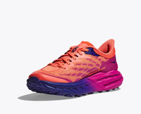 A workhorse designed for technical trails, the Speedgoat returns with less weight and more traction than ever before. A new shoe from outsole to laces, this trail beast is updated with Vibram® Megagrip with Traction Lug for enhanced grip on loose soil. Retaining the same stack height and rocker profile, the Speedgoat 5 employs a lighter midsole compound and heartier, double layer jacquard mesh to inspire confidence on any terrain. Item No. 1123158 Best for: Trail Running Hiking Features: Double layer jacquard engineered mesh Protective toe rand Late stage Meta-Rocker Vibram Megagrip with Traction Lug Vegan Lay-flat gusseted tongue Bolstered heel collar Molded EVA sockliner Compression-molded foam midsole 5mm lug RN 88276 WHAT'S NEW Less weight and more traction. (A half ounce lighter, to be exact.) THE DETAILS Weight 8.50 oz Heel-To-Toe Drop 4.00 mm Volume 519.00 cm 3 Spring Measurement 32x19 mm Stability The Speedgoat 5 features a symmetrical bed of cushion without additional prescriptive technologies. Designed to provide the support you want and nothing you don't. Cushion The Speedgoat 5 is designed to provide protective cushion while maintaining a responsive toe-off for when you want to go faster.
