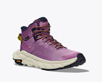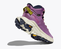 Honoring the unspoken code of the trail, this day hiker boot treads lighter with responsible manufacturing practices. Grounded in a HUBBLE® heel with SwallowTail™ geometry, the Trail Code uses a responsive new foam for exceptional cushioning. Finished with dimensional screen printing to decrease waste and increase durability, this trail contender was made for exploring. Item No. 1123166 Best for: Hiking Features: Ripstop upper with 100% recycled textile GORE-TEX bootie construction with 71% recycled polyester face fabric HUBBLE®heel & SwallowTail™ HOKA geometry Vibram® Megagrip rubber with 5mm lug Water-repellant materials Quick-lace metal top hooks 3D screen print overlay Anatomical Achilles construction with heel pull tab Topically applied PFC-free water repellency treatment Compression molded EVA midsole Late stage MetaRocker™ Molded PU sockliner with 50% soybean oil 100% Recycled polyester webbing/laces (excluding aglet) 68% recycled polyester external collar mesh 100% Recycled polyester tongue/ collar lining and heel webbing 80% Recycled polyester strobel board RN 88276 THE DETAILS Weight 12.70 oz Heel-To-Toe Drop 6.00 mm Stability The Trail Code GTX features a symmetrical bed of cushion without additional prescriptive technologies. Designed to provide the support you want and nothing you don't. Cushion The Trail Code GTX is designed to provide protective cushion while maintaining a responsive toe-off for when you want to go faster.