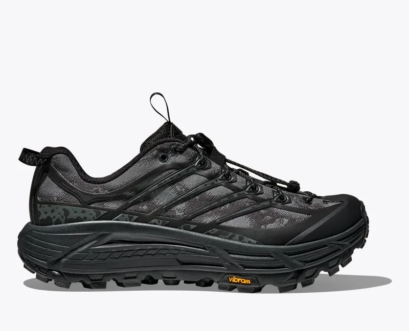 With serpentine design cues inspired by the Year of the Snake, this season's Stealth/Tech Mafate Three2 is a hypermodern remix of our classic trail powerhouse. From the engineered mesh upper to the raised textured print on the TPU overlays and raised printed details, this trail runner is built out with rugged performance features. Engineered mesh upper. Raised texture print on TPU overlays. Metal eyelets. Molded toe cap. UV print details.