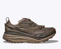 Our latest hybrid, the Stinson One7 merges past and present with upgraded technical chops wrapped in original HOKA aesthetics. We took the iconic tooling and comfort of the Stinson 7, added a translucent upper and internal cage inspired by the Stinson Lite-and finished it with a 3D-molded TPU heel clip for a look all its own. Surprisingly lightweight, this looker is also truly trail ready. Translucent Mono Mesh Upper. Microfiber collar. 3D-molded TPU Heel Clip. Oversized medial bird branding. Speed lacing. Internal cage detail. Stabilizing H-Frame. CMEVA foam. Multi-directional lugs.