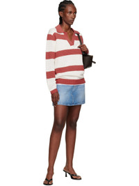 Non-stretch organic cotton denim miniskirt. · GOTS-certified organic cotton · Fading and whiskering throughout · High-rise · Belt loops · Five-pocket styling · Zip fly · Logo embroidered at coin pocket · Logo patch at back waistband · Silver-tone hardware · Contrast stitching in tan Supplier color: Lt. Blue 100% cotton. Made in Turkey 252946F090001