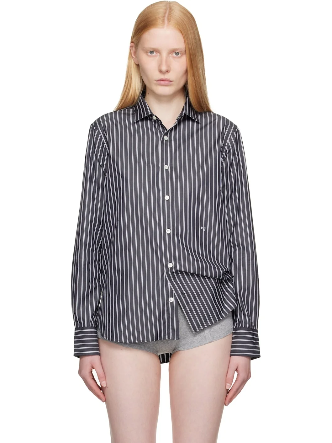 Cotton poplin shirt. Stripes throughout. · Spread collar · Button closure · Logo embroidered at front · Shirttail hem · Adjustable buttoned barrel cuffs · Box pleat at back yoke · Logo-engraved mother-of-pearl hardware Supplier color: Black stripe 100% cotton. Made in Italy 252783F109009