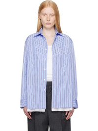 Cotton poplin shirt-style minidress. Stripes throughout · Spread collar · Button closure · Logo flag and patch pocket at chest · Logo embroidered at front · Raw edge at tiered hem · Adjustable buttoned barrel cuffs · Box pleat at back yoke · Logo-engraved mother-of-pearl hardware Supplier color: Japanese blue stripe 100% cotton. Made in Italy 252783F052001