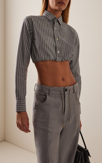 A new multi-media passion project from acclaimed designer Thakoon Panichgul, Homme Girls is dedicated to the women who shop in the men's department — where the expertly tailored clothes were designed to exude authority. Think: what would Katharine Hepburn wear today? A playful twist on our original cropped shirt, featuring a cinched hem with adjustable ties at the back. Fits like a men's shirt in the shoulders. PRODUCT DETAILS - Ties at back - Composition: 100% Italian cotton - Machine wash - Made in Italy