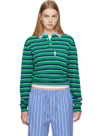 Knit wool-blend polo. · Stripes throughout · Rib-knit spread collar, hem, and cuffs · Three-button placket · Logo flag and patch pocket at chest Supplier color: Green stripe 90% wool, 10% cashemre. Made in Tunisia 261783F108009