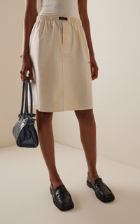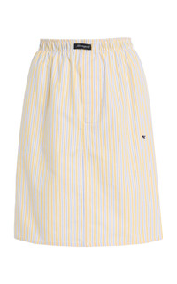 A new multi-media passion project from acclaimed designer Thakoon Panichgul, Homme Girls is dedicated to the women who shop in the men's department — where the expertly tailored clothes were designed to exude authority. Think: what would Katharine Hepburn wear today? Boxer-style pencil skirt, featuring black signature logo label on waistband. PRODUCT DETAILS - Spring '25 - Pull on - Composition: 100% Italian cotton - Machine wash - Made in Italy SIZE & FIT - Our model is wearing a size small - Model is 5’9.5" with a 32" bust, 24" waist, and 35.5” hip - Fits true to size, our fit specialist recommends taking your normal size