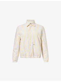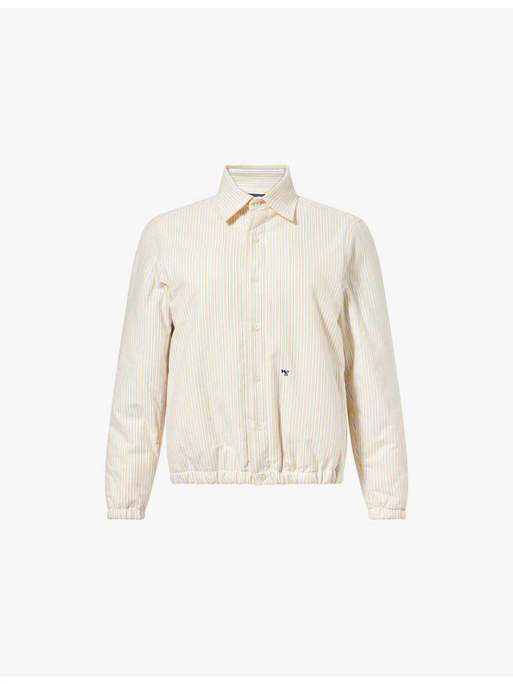PRODUCT DETAILS - HommeGirls cotton-poplin jacket - 100% cotton; filling 100% polyester; sleevelining 50% acetate, 50% viscose - Exposed button fastening at front - Regular fit, spread collar, long sleeves, buttoned cuffs, brand embroidery at front, straight yoke and pleat at back, all-over striped print, all-over padded, fully lined, elasticated trims - Machine wash at 30°C - Made in Italy - True to size - Size small: length 22in / 57cm - Model is 5ft 10in/1.78m and wears a size small - Midweight, stretchy Ref: R04475656