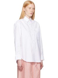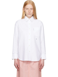 Cotton oxford cloth shirt. · Spread collar · Button closure · Logo flag and patch pocket at chest · Logo embroidered at front · Shirttail hem · Adjustable buttoned barrel cuffs · Button fastening at back collar · Twin pleats at back yoke · Logo-engraved mother-of-pearl hardware Supplier color: White oxford 100% cotton. Made in Italy 252783F109006