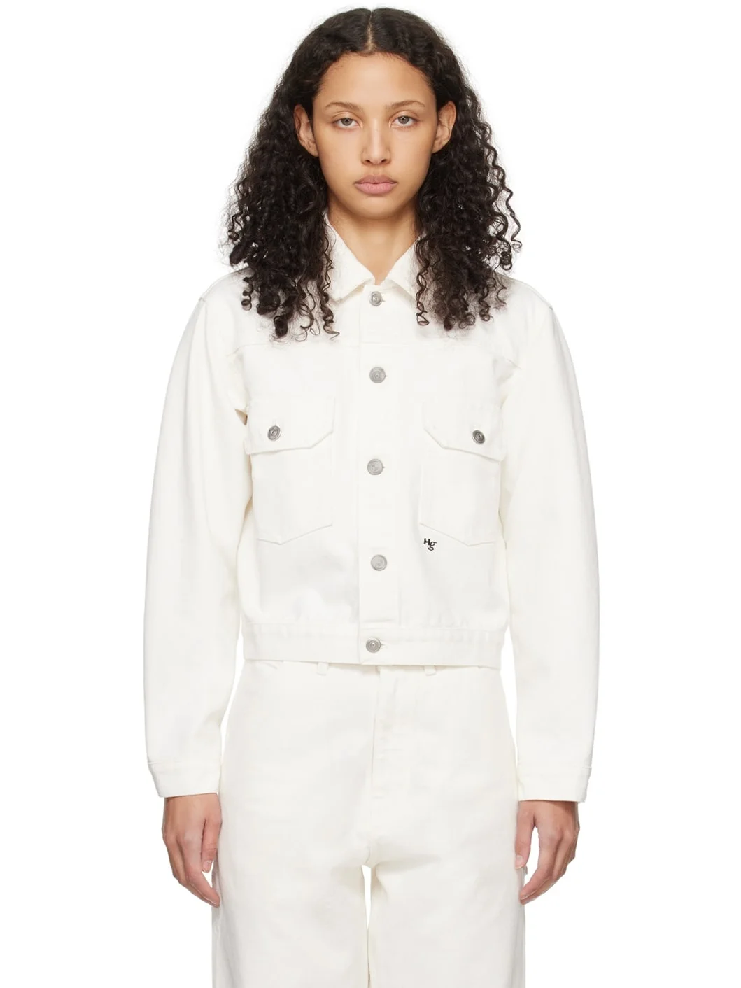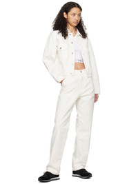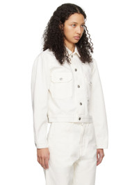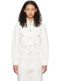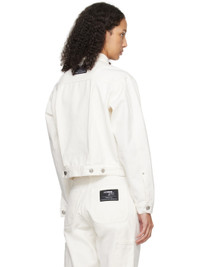 Non-stretch denim jacket. · Corduroy trim at spread collar · Button closure · Flap pockets · Logo embroidered at front · Single-button barrel cuffs · Logo patch at back yoke · Adjustable button-tabs at back hem Supplier color: White 100% cotton. Made in Italy 241783F060001