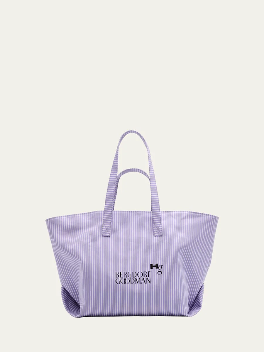 HOMMEGIRLS x Bergdorf Goodman tote bag in striped cotton twill Features embroidered logos at the front Double top handles Open top Spot clean Made in Italy Online Inquiries: BGS21_V6HUW| Store Inquiries: #5008661