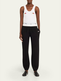 HOMMEGIRLS sweatpants featuring a peekaboo logo boxer waistband and a logo patch on the hip Made in collaboration with Fruit of the Loom, paying homage to its legacy with vintage-inspired fits, playful details, and classic silhouettes for every HommeGirl. Mid rise sits high on hip Side welt pockets Straight legs Cropped at the ankle Elasticized cuffs Pull-on style Cotton Imported Online Inquiries: BGS21_BB3SZ| Store Inquiries: #5481692