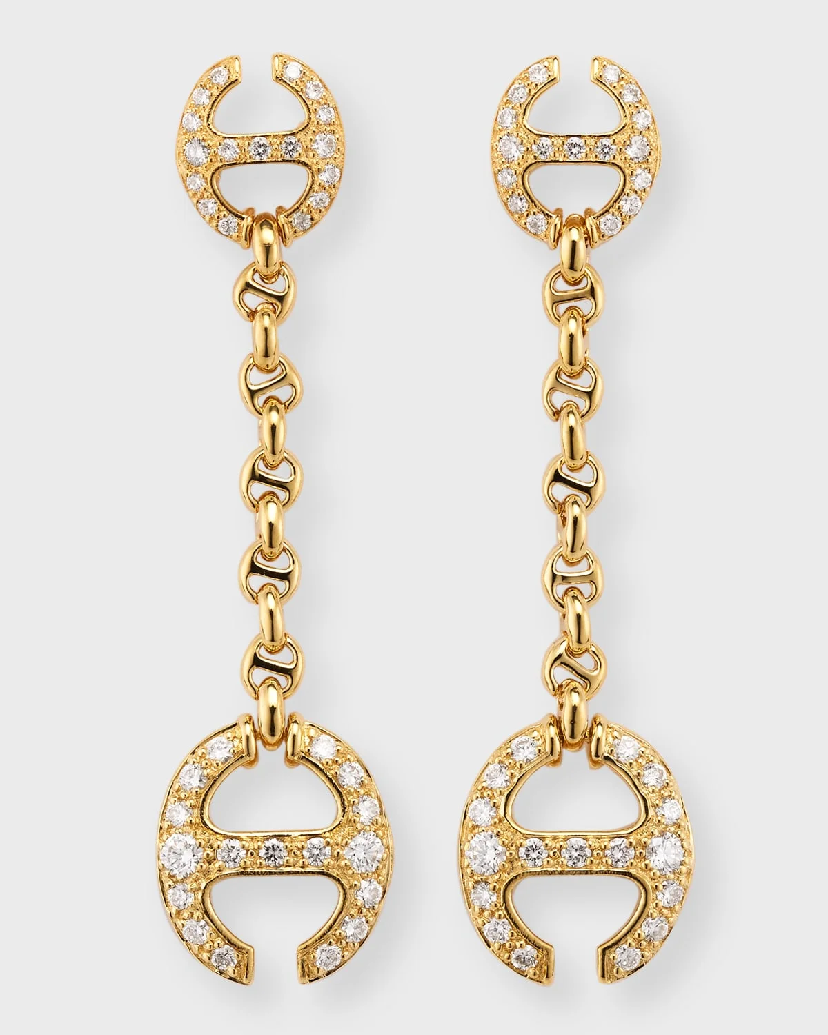 18K Yellow Gold Micro Link Chain Earrings with Diamonds