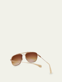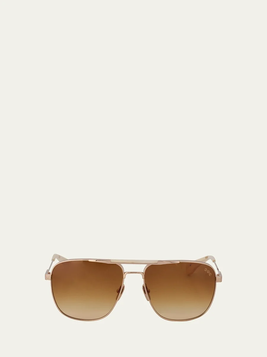 Hoorsenbuhs aviator sunglasses in titanium and 24-karat solid gold Lens/bridge/temple (in mm): 59-16-145 Thick brow bar Gradient lenses; logo on corner Adjustable nose pads Thin, tapered arms Capped earpieces 100% UVA/UVB protection Made in Japan Online Inquiries: BGS21_D4XJN| Store Inquiries: #4797743