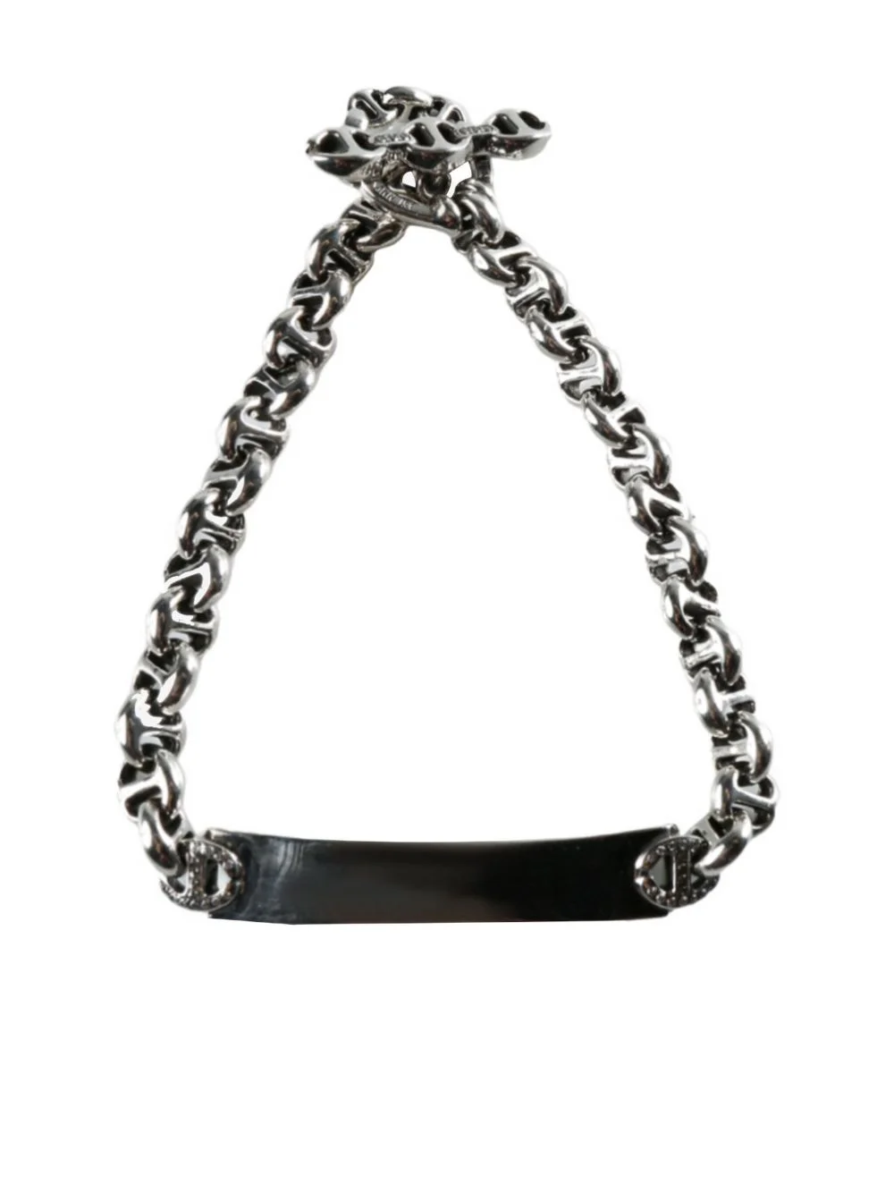 silver chain id-plate bracelet Highlights - Silver - Chain detail - T-bar fastening - Ornate detailing Made in United States