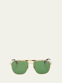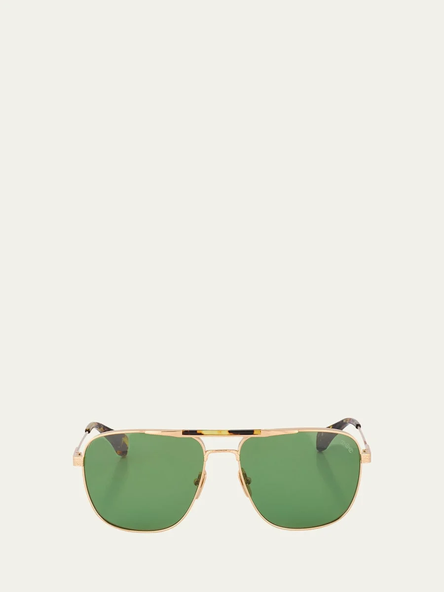 Hoorsenbuhs aviator sunglasses in titanium and 24-karat solid gold Lens/bridge/temple (in mm): 59-16-145 Tortoise brow bar Solid lenses; logo on corner Adjustable nose pads Thin, tapered arms Capped earpieces 100% UVA/UVB protection Made in Japan Online Inquiries: BGS21_D4XJK| Store Inquiries: #4797740