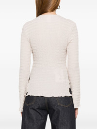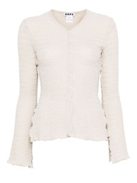 V-neck cardigan Highlights - Off-white - Textured finish - Button fastening - V-neck - Long sleeves - Ruffled hem Imported Composition Cotton 65%, Polyester 30%, Elastane 5% SIZE & FIT Model measurements Height 5 ft 11 in(1.8 m) Bust/Chest 32.67 in(83 cm) Hips 35.82 in(91 cm) Waist 23.62 in(60 cm) Washing instructions Read Manufacturer Guidelines