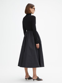 Cut from our luxurious and crisp silk taffeta, the A-lined Midi Skirt is a high-waisted midi skirt with a voluminous A-line silhouette. Beautifully crafted, it is framed by a concealed elastic waistband and ends above the ankle. FIT & SIZING Model is 175cm / 5'7" and is wearing a size 36, UK 8, US 4. MATERIAL 69% Polyester, 31%Silk. GARMENT CARE Hand wash cold. Dry flat. Iron at low heat. GARMENT ORIGIN Produced in Portugal