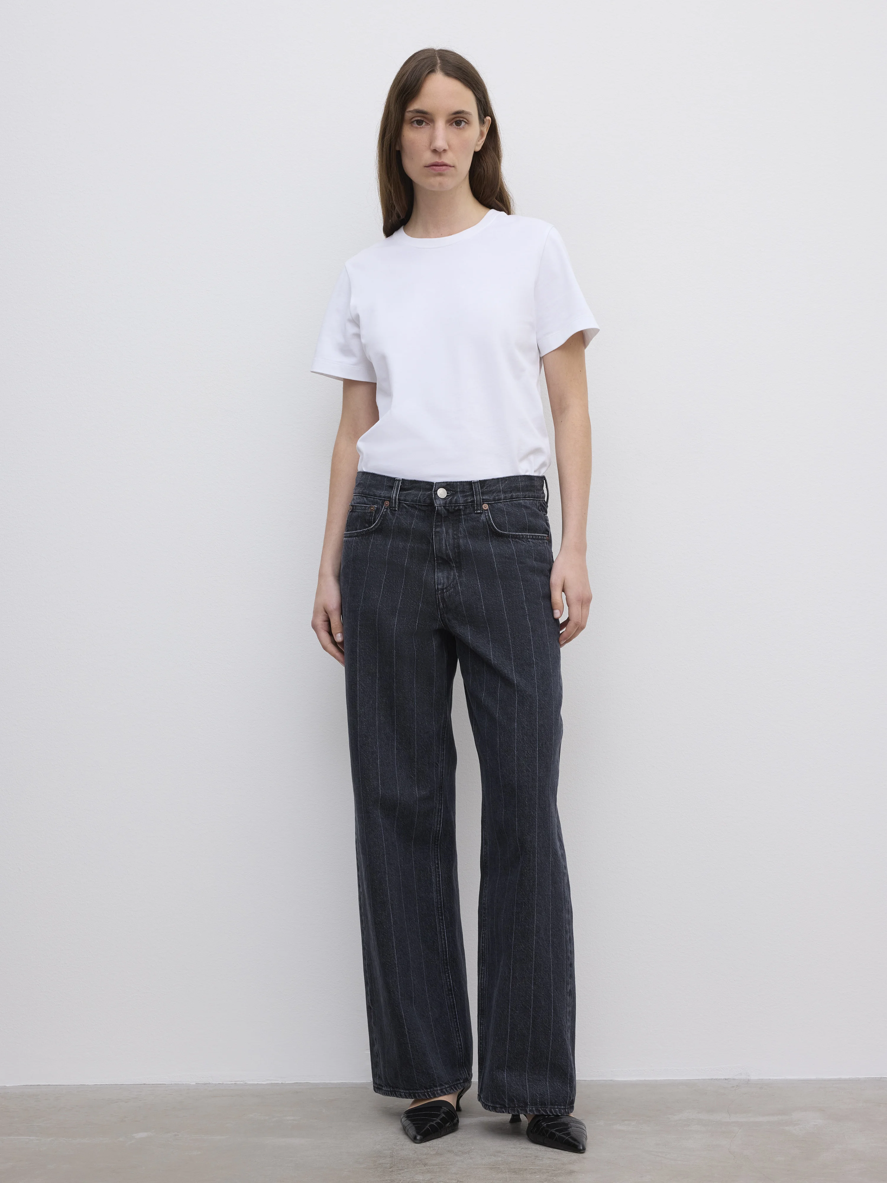 A mid-rise long-length denim in 100% organic cotton, jeans with a baggy fit, wide leg, slightly dropped drotch and classic 5-pocket frame. Made in Italy. - Baggy fit - Mid waist - Wide leg - Slightly dropped crotch - Long Length - Zip fly FIT & SIZING Model is 178 cm/ 5'8" and is wearing a size 27/34 Fits big in size, many choose to size down one size MATERIAL 100% Organic cotton GARMENT CARE Machine wash 30° delicate GARMENT ORIGIN Produced in Italy
