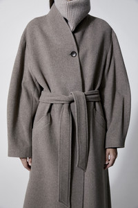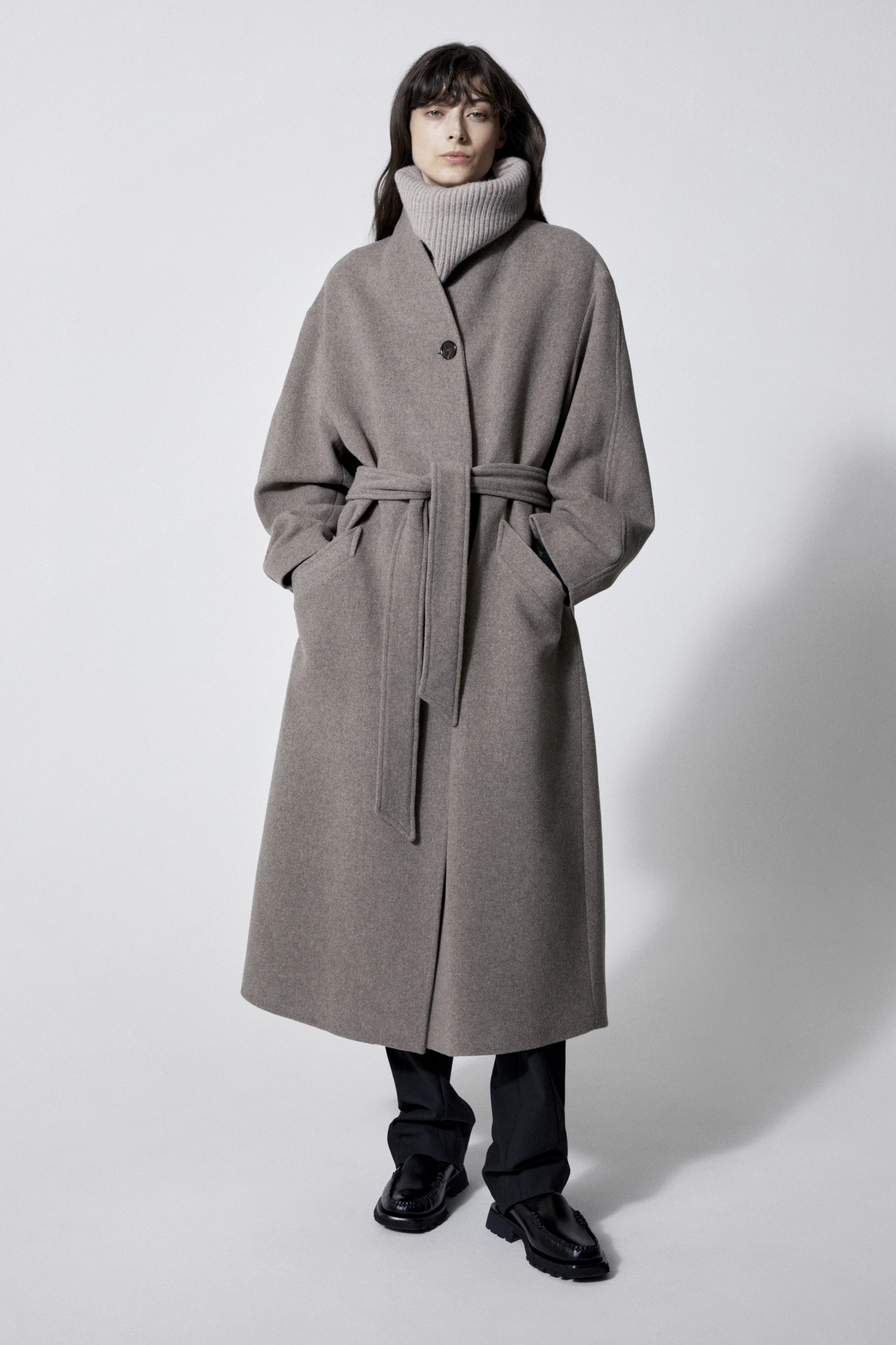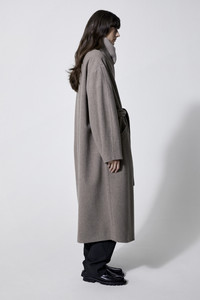 Imagined in our soft and sustainably sourced recycled wool, Cameron is an oversized and relaxed coat with a cocoon silhouette. Refined by dropped shoulders, rounded sleeves, and front single button closure and belt, this enveloping versatile piece is finished with a split at the back. Runs big in size, many choose to size down one size in this item. FIT & SIZING Model is 175cm / 5'7" and is wearing a size 36 Runs big in size, many choose to size down one size in this item. MATERIAL 70% Wool 20% Polyester 5% Polyamide 5% Other fibres GARMENT CARE Dry clean only GARMENT ORIGIN Produced in Portugal